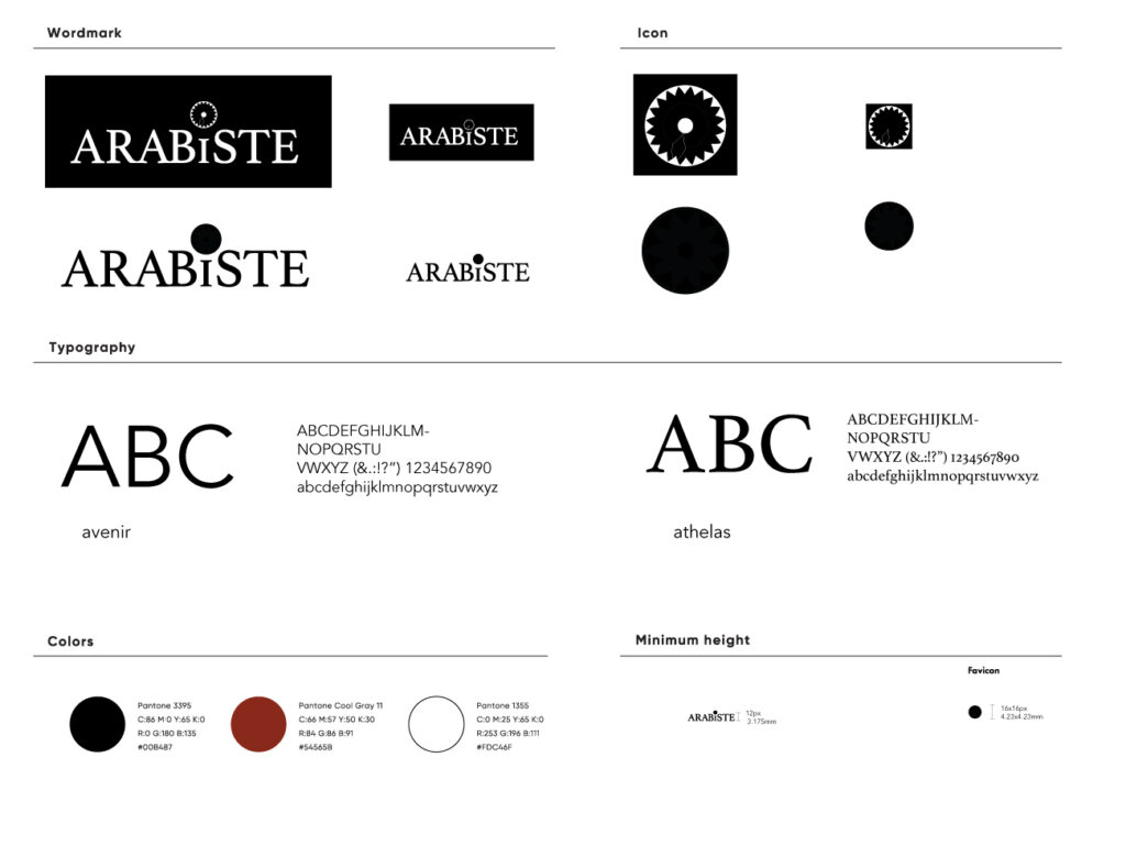 Choosing the right typography was another essential step. I wanted a typeface that reflected the strength and precision of Middle Eastern art but remained elegant and modern. After experimenting with several options, I selected Athelas for the logo and titles because of its refined, structured form. To complement it, I chose Avenir as a secondary font. Its smooth and minimalistic design created a sense of calm contrast, balancing the boldness of Athelas.